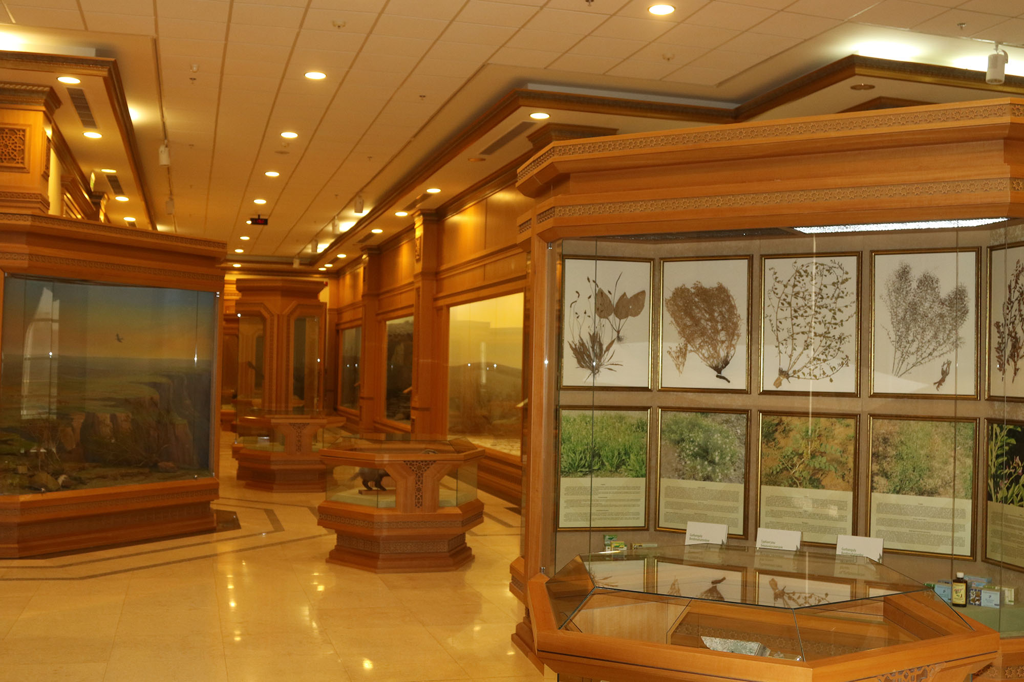 Daşoguz welaýatynyň Taryhy we ülkäni öwreniş muzeýiniň Tebigat zalynyň ekspozisiýasy şu welaýatyň toprak kartasy we topraklaryň görnüşleri bilen başlanýar. Soňra witrinalarda Daşoguz welaýatyň klimat kartasy, Üstýurt platosynyň we Sarygamyş kölüň fotosuratlary, gazylyp alynýan peýdaly minerallaryň görnüşleri gökezilýär. Diwarda ýerleşen uly karta şu sebitiň haýwanat dünýäsini görkezýär. “Tokaýlar’’ atly dioramada Garagum çölüniň içinde Sarygamyş kölüň emele gelmegi bilen ösümlikli oazisleriň döreýşini suratlandyrýar. Zalyň merkezi witrinalarynda derman, çöl we başga ösümlikleri görmek bolýar. 1983-1987-nji ýyllar aralykda Ustýurt platonyň çägine gulanlar göçürilýär. Bu bolsa “Gulanlar we Türkmen köli” atly dioramada we diwarda öz ornuny tapýar. “Saýgaklar” dioramasynda bu haýwanlaryň biziň ýurdumyzyň demirgazygyna ýazky göçüşini görkezýär. Mör-möjekleriň köpdürliligi bilen aýratyn bir witrinada tanşyp bolar. Ekspozisiýanyň iň uly dioramalary Üňüz aňyrsy Garaguma, Gaplaňgyra we Sarygamyşa bagyşlanan.