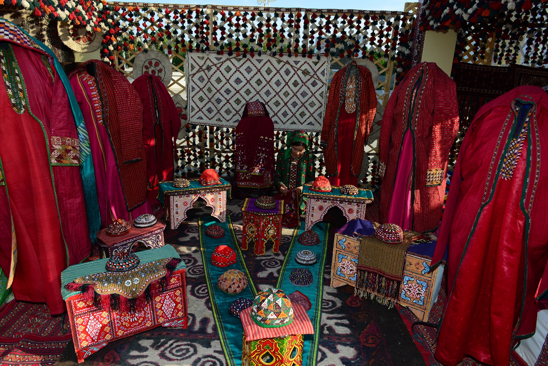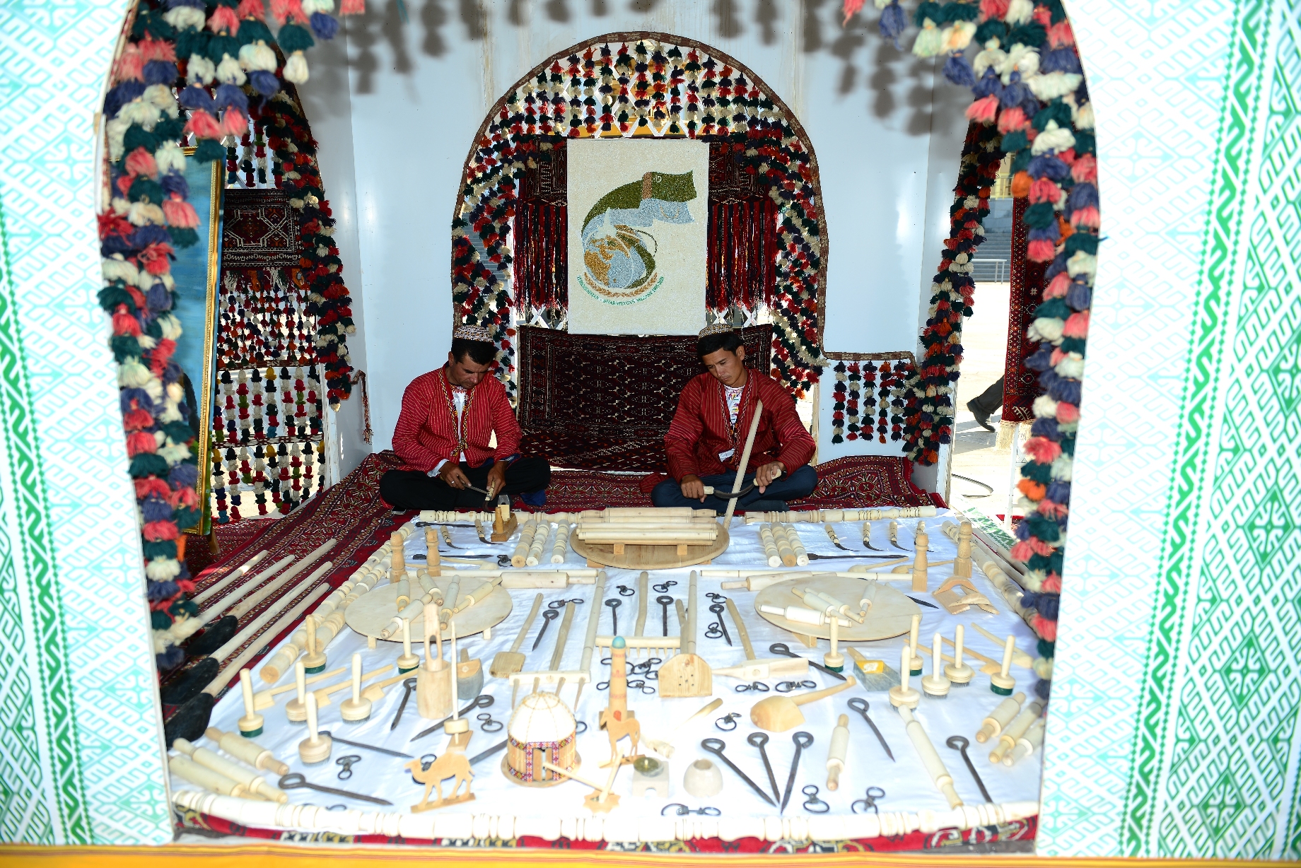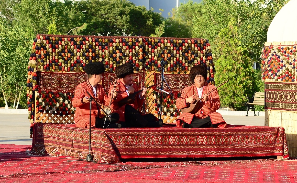 Daşoguz 24-nji iýun. Welaýatymyzy toý şatlygy bilen nurlandyrýan Medeniýet hepdeliginiň bu gününiň ikinji ýarymynda Daşoguz şäherindäki “Derek” bagynda folklor-tans toparlarynyň çykyşlary guraldy. Halkymyzyň ýaşaýyş-durmuşy bilen baglanyşykly edim-gylymlary, toý däp-dessurlary öz beýanyny tapan bu çykyşlaryň sahnasynda milli gymmatlyklarymyzyň sergileri ýaýbaňlandyryldy. Bu ýerde ýerleşdirilen muzeý gymmatlyklarynyň sergileri ýaşlaryň milli mirasymyz bilen içgin tanyşmagyna aýratyn ýardam berdi.