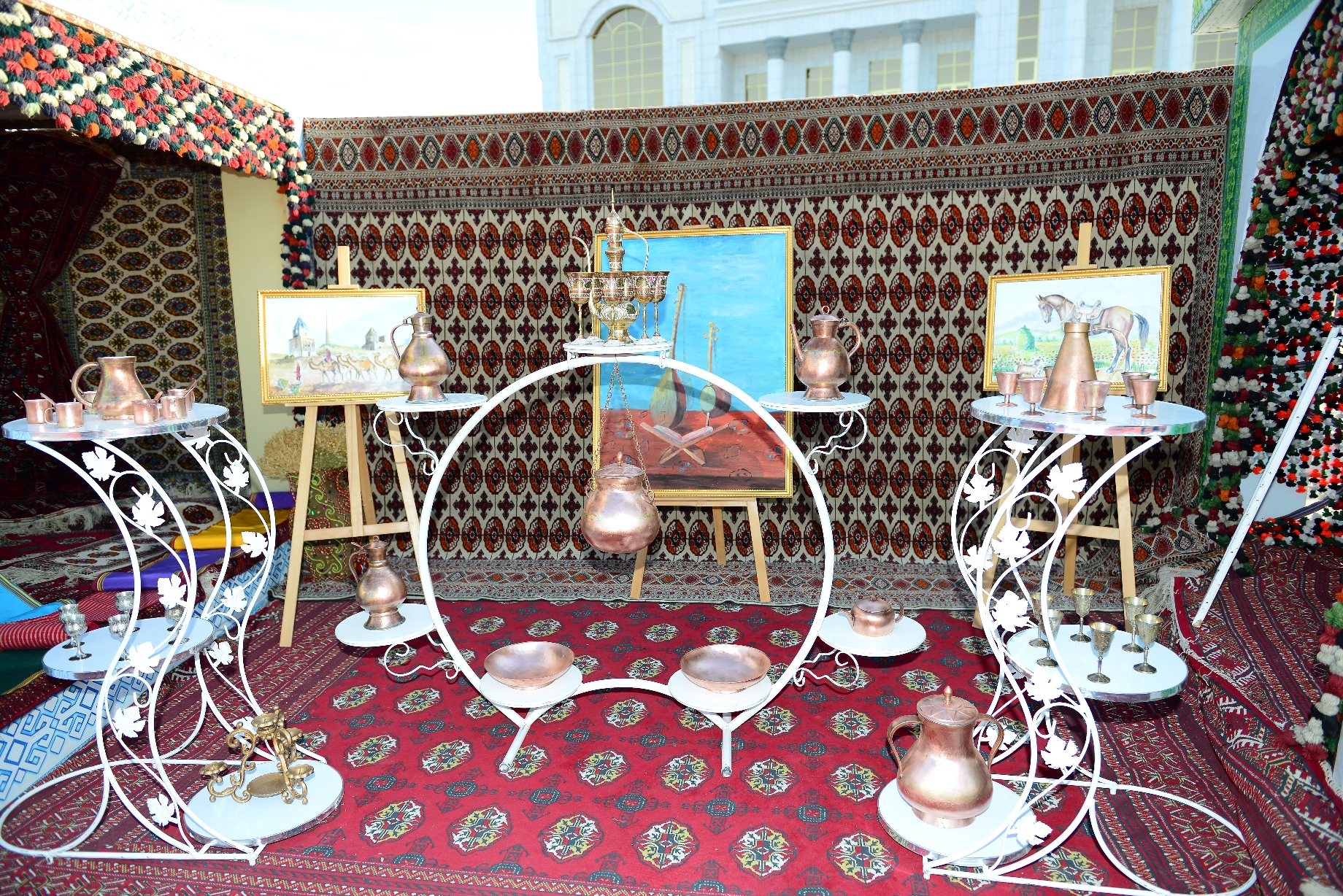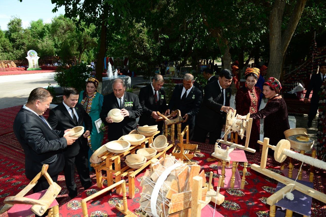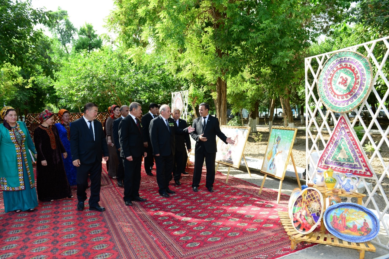 Daşoguz 23-nji iýun. Daşoguz şäherindäki “Dostluk” seýilgähinde şekillendiriş we amaly-haşam sungaty eserleriniň, muzeý gymmatlyklarynyň sergisi açyldy. Serginiň açylyş dabarasynda ýurdumyzyň muzeý we döredijilik işgärleri tarapyndan, ýurdumyzda Gahryman Arkadagymyzyň beýik başlangyçlary bilen milli mirasymyzyň ösdürilişi, täze döwrümiziň ruhunda baýlaşdyrylyşy barada buýsançly çykyşlar edildi. Medeniýet hepdeligine gatnaşyjylar bu ýerde milli-medeni mirasymyzyň gymmatlyklary bilen ýakyndan tanyşdylar. Dabara gatnaşyjylar medeni gymmatlyklarymyz barada baý we gyzykly maglumatlara eýe boldular.
