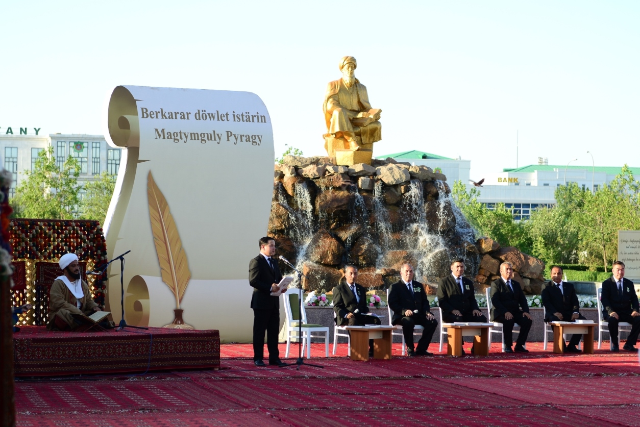 Daşoguz 27-nji iýun. Tutuş hepdäniň dowamynda welaýatymyzyň çäklerinde joşgunly ýaýbaňlanan Medeniýet hepdeliginde Medeniýet we sungat işgärleriniň hem-de Magtymguly Pyragynyň şygryýet güni mynasybetli beýik türkmen şahyry Magtymguly Pyragynyň heýkeliniň etegine gül desselerini goýmak dabarasy özboluşly mazmuna eýe boldy. Medeniýet hepdeligine bagyşlanan köp görnüşli, işjeň häsiýetli dabaralar çuň many-mazmuna eýe bolmak bilen, baýramçylyk ruhunda bezelen “Görogly” meýdançasynda ýurdumyzyň medeniýet we sungat ussatlarynyň gatnaşmagynda geçirilen baýramçylyk konserti bilen şowhunly jemlendi. Baýramçylyk sahnasynda Medeniýet hepdeligini geçirmegiň nobatynyň Lebap welaýatyna dabaraly ýagdaýda berilmegi, Medeniýet hepdeliginiň göçme nyşanyny welaýatymyzyň döredijilik wekilleri tarapyndan Lebap welaýatynyň medeniýet we sungat işgärleriniň wekillerine dabaraly ýagdaýda gowşurulmagy has-da täsirli boldy.