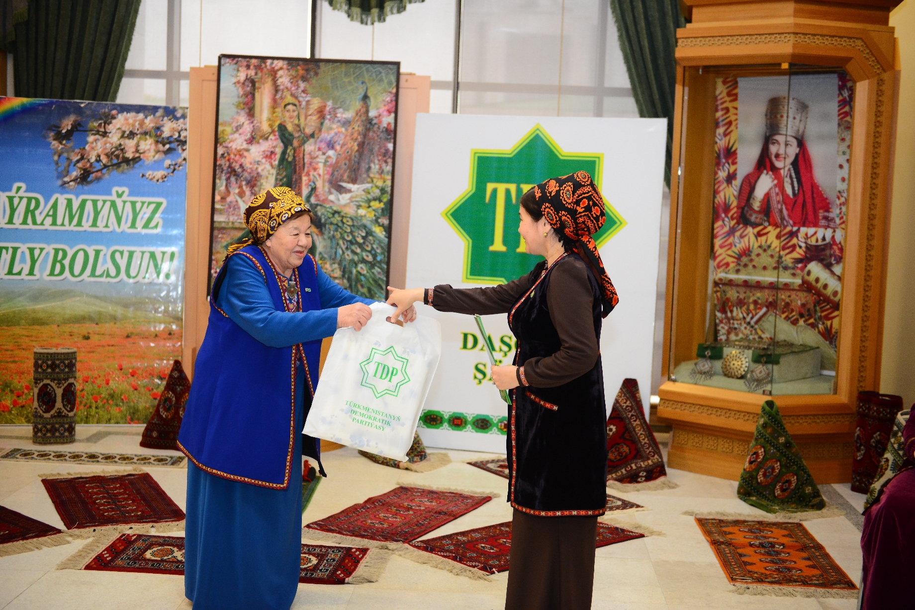 Halkara Zenanlar gününiň öň ýanynda hormatly Prezidentimiziň adyndan pul sowgatlaryny gowşurylyş dabaralary bilen birlikde ýurdumyzyň jemgyýetçilik guramalary hem dürli ugurlarda tapawutlanyp zähmet çekýän gelin-gyzlarymyzy has-da höweslendirmek maksady bilen baýramçylyk çärelerini giňden geçirýär. Şeýle çäreleriň biri Türkmenistanyň Demokratik partiýasynyň Daşoguz şäher komitetiniň hem-de Daşoguz welaýatynyň taryhy we ülkäni öwreniş muzeýiniň gurnamagynda muzeýde geçirildi. 8-nji mart Halkara zenanlar güni mynasybetli “Ýurdumyz berkarar – zenanlar bagtyýar” ady bilen geçirilen baýramçylyk çäresine Türkmenistanyň Demokratik partiýasynyň Daşoguz şäher komitetiniň işjeň agzalary bilen birlikde muzeý işgärleri hem gatnaşdylar. Baýramçylyk çäresini TDP-niň Daşoguz şäher komitetiniň başlygy Sapargül Kuliýewa gutlag sözi bilen açyp, TDP-niň Daşoguz şäher komitetiniň bölüm müdiri Aýsoltan Nurmedowa, Daşoguzyň M.Garlyýew adyndaky ýörite sungat mekdebiniň mugallymy Şirin Allabaýewa, Türkmenistanyň Türkmenbaşy DTB-nyň Daşoguz welaýat şahamçasynyň hünärmeni Selbi Hojakowa, Daşoguz welaýatynyň taryhy we ülkäni öwreniş muzeýiniň hünärmeni Laçyn Nurmedowa dagylar ýurdumyzda zenanlara goýulýan sarpa barada hormatly Prezidentimize hoşallyk sözleri bilen çykyş etdiler. Baýramçylyk çäresiniň dowamynda TDP-niň Daşoguz şäher komitetiniň işjeň zenanlarynyň birnäçesine TDP-niň Daşoguz şäher komitetiniň Hormat hatlary we sowgatlary dabaraly ýagdaýda gowşurlydy.