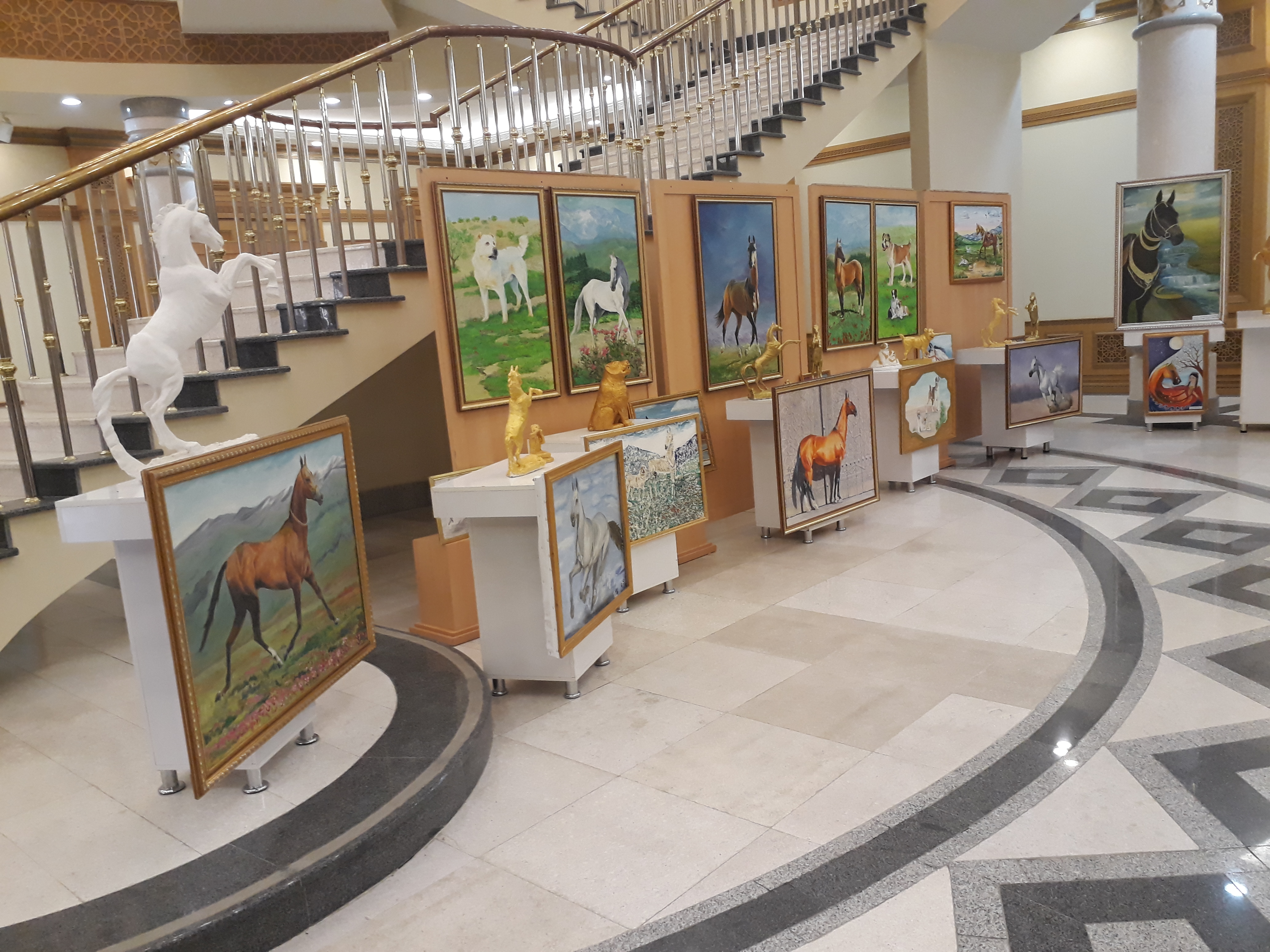 Gahryman Arkadagymyzyň baştutanlygynda türkmen halkymyz, owadanlykda hem ýyndamlykda dünýä meşhur behişdi bedewlerimiziň hem-de ak öýlerimiziň gelişigi türkmeniň alabaýynyň şan-şöhratyny belende galdyryp, toý toýlaýar. Şu ajaýyp baýramçylyk mynasybetli golaýda, Daşoguz welaýatynyň taryhy we ülkäni öwreniş muzeýindeDaşoguz welaýat häkimligi, Daşoguz welaýat medeniýet müdirligi, Daşoguz welaýat Baş bilim müdirligi, Daşoguz çeper halyçylyk kärhanasy hem-de welaýatyň jemgyýetçilik guramalarynyň guramagynda welaýatymyzyň höwesjeňleriniň, suratkeşleriniň, heýkeltaraşlarynyň, bilim işgärleriniň, halyçylaryň arasynda “Türkmen bedewleri hem-de türkmen alabaýy milli buýsanjymyz” atly döredijilik bäsleşigi geçirildi. Çekeleşikli geçen bu bäsleşige hödürlenen eserlerde türkmen bedewiniň we alabaýynyň keşpleri dürli reňklerde, şeýle-de oba hojalykda ösdürilip ýetişdirilýän däneli ekinler: tüwi, mäş, dary, künji, gawun, garpyz we günebakar ösümlikleriniň çigitlerinden şekillendirilen keşplerde, haly çitimlerinde, heýkeltaraş işlerinde wasp edilýär. Muzeýiň wagtlaýyn sergiler bölümini bezäp oturan bu özboluşly bäsleşik sergisinde ýerleşdirilen sungat eserleri behişdi bedewlerimiziň hem-de wepaly türkmen alabaýynyň, halkymyzyň gadymy atşynaslyk we seçgiçilik sungatynyň dowamat-dowam bolýandygyna şaýatlyk edýär.