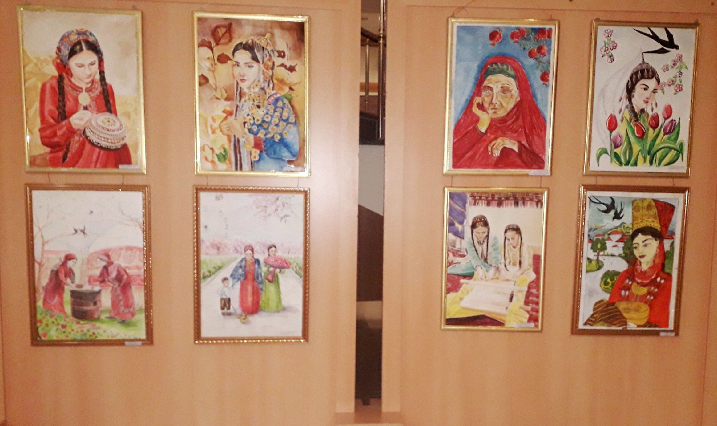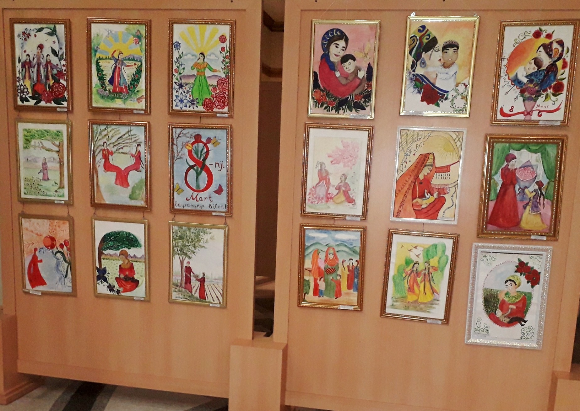 “Halkara zenanlar güni” mynasybetli Daşoguz welaýatynyň taryhy we ülkäni öwreniş muzeýiniň wagtlaýyn sergiler zalynda guralan “Zeminiň görki zenanlar” atly baýramçylyk sergisinde Daşoguz şäheriniň çagalar çeperçilik mekdebiniň okuwçylarynyň we mugallymlarynyň heýkel hem-de surat eserleri sergilendi. Dürli reňkleriň üsti bilen enäniň perzendine bolan mähir-muhabbeti, gözel tebigatymyzyň ajaýyplyklary, bahar paslynyň al-elwan gülleri beýan edilen eserler sergini synlanlaryň ünsüni has-da özüne çekdi.
