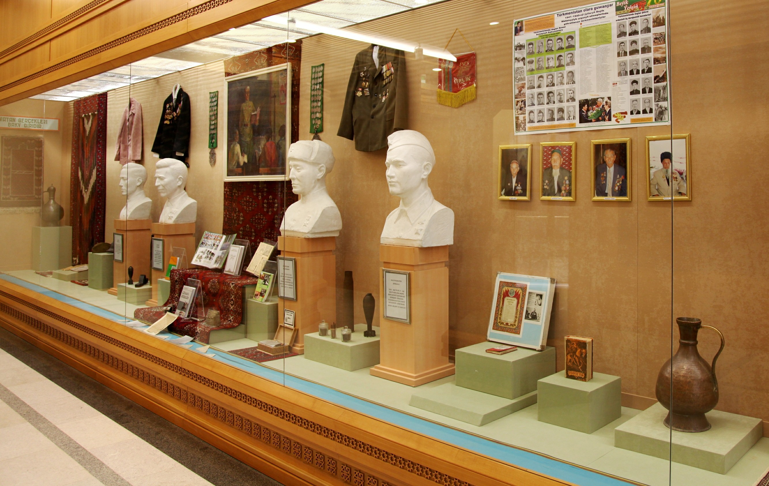 1941–1945-nji ýyllaryň Beýik Watançylyk urşunda gazanylan Ýeňşiň 78 ýyllygy mynasybetli muzeýiň wagtlaýyn sergiler bölüminde “Gahrymanlar ýüreklerde baky ýaşaýar” ady bilen baýramçylyk sergisi guraldy. Sergide döwürleriň hem nesilleriň arasyndaky mizemez baglanyşygy has-da berkiden, parahat durmuş, bagtyýar geljek üçin şirin janlaryny gurban eden merdana gerçeklerimiziň geçen gahrymançylykly ýoluny beýan edýän nakgaş eserleri bilen birlikde, tylda zähmet çeken adamlaryň durmuşy baradaky maglumatlar hem giň orun aldy.