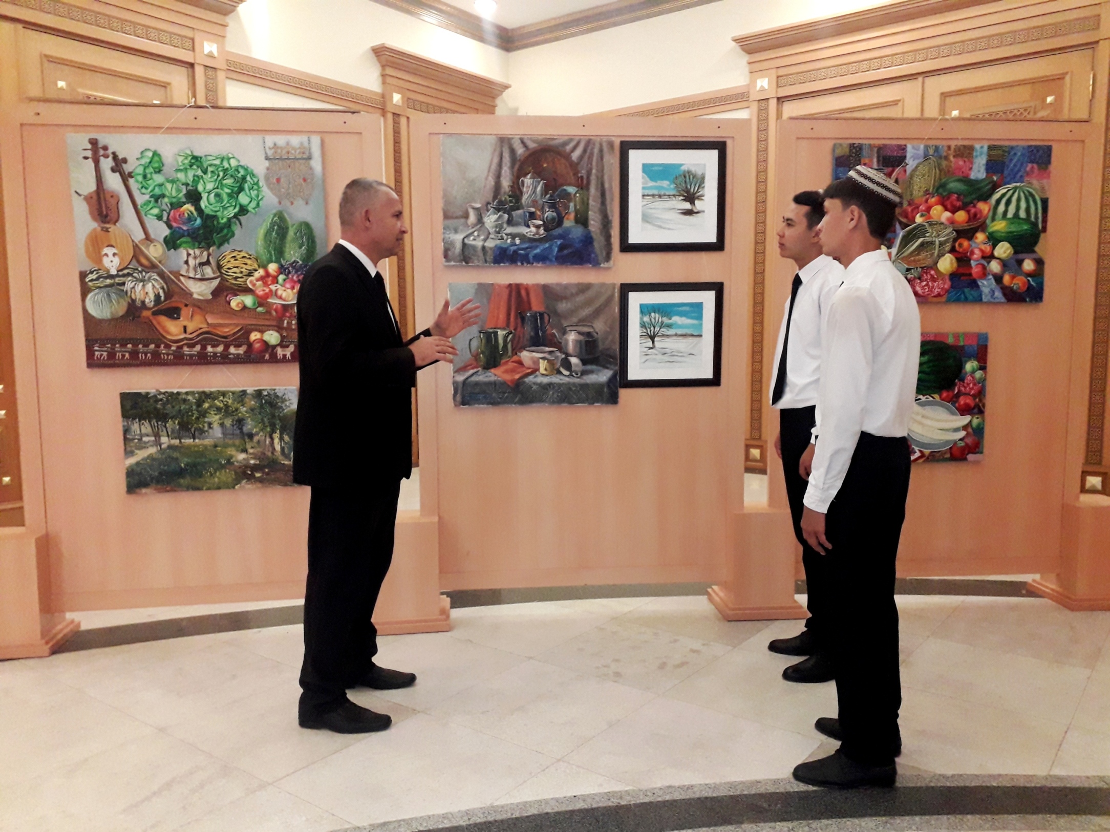 Türkmenistanyň Suratkeşler birleşiginiň Daşoguz welaýat şahamçasynyň guramagynda Türkmenistanyň Döwlet çeperçilik akademiýasynyň ýanyndaky Türkmen döwlet ýörite çeperçilik mekdebiniň mugallymlarynyň we talyplarynyň ýurdumyzyň garaşsyzlygyny wasp edip ýerine ýetiren nakgaş eserleriniň muzeýimizde baýramçylyk sergisiniň dabaraly açylşy boldy. “Berkarar ýurdumyň kämil sungaty” diýlip atlandyrylan wagtlaýyn sergide ýerleşdirilen her bir eserde garaşsyzlyk ýyllarynda ýetilen belent sepgitler, gazanylan üstünlikler, milli mirasymyzyň bagtyýarlyk öwüşginde şöhlelenşi ussatlyk bilen wasp edilipdir. Aýratyn mazmuna eýe bolan serginiň çäginde tomaşaçylara bu çeperçilik mekdebiniň mugallymy Merdan Kakabaýewiň mekdebiň durmuşy, mekdepde talyplara dünýä we milli şekillendiriş sungatynyň ussatlarynyň tärleriniň öwredilişi barada gürrüň bermegi serginiň täsirliligini has-da artdyrdy. Daşoguzyň Magtymguly Garlyýew adyndaky ýörite sungat mekdebiniň nakgaş bölüminde okaýan talyplary hem bu sergini ýakyndan synlamaga gelip, ýaş nesilleriň sungata bolan ukyp-başarnygyny ýüze çykarmaga, bu ugurda halypa-şägirtlik gatnaşyklaryny ösdürmäge uly üns berýän Gahryman Arkadagymyza, Arkadagly Gahryman Serdarymyza köp sagbolsunlaryny aýtdylar.